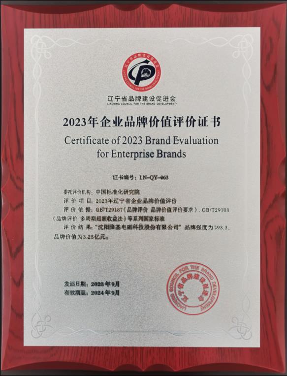 沈陽隆基電磁科技股份有限公司品牌價(jià)值3.25億元,品牌強(qiáng)度793.3,位于省機(jī)械制造類前列。 2023-12-01