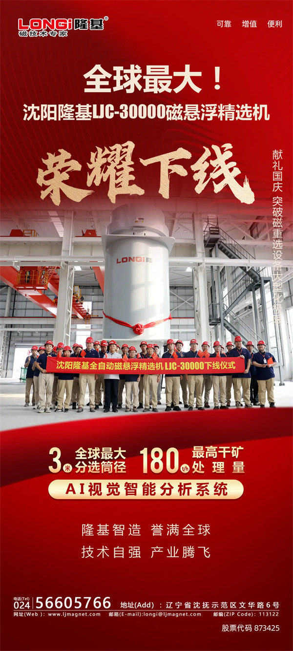 全球最大磁懸浮精選機(jī)LJC-30000在沈陽隆基下線。 2025-09-28