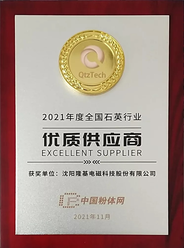 11月18日晚,2021全國石英大會頒獎典禮隆重舉行,隆基電磁獲得“2021年度全國石英行業優質供應商”稱號。