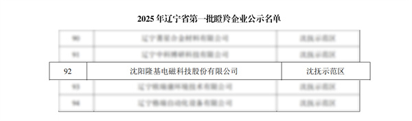 近日,遼寧省科學技術廳正式公布《2025年遼寧省第一批擬備案雛鷹瞪羚獨角獸企業名單》,沈陽隆基憑借持續創新能力、高速成長態勢及前瞻戰略布局,成功入選“瞪羚企業”。
