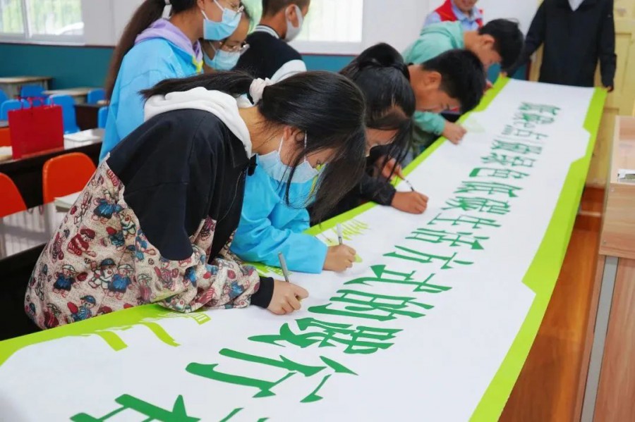 在陳倉區坪頭中學,青年志愿者們為學生開展了涉及能源、兵器、高鐵等領域的知識科普,并開展科普實驗表演及科普大篷車展覽,倡導“熱愛科學 崇尚科學”的社會風尚,在學生心間厚植科學的種子;邀請“中央企業青年崗位能手”李曉軍講述個人成長與企業發展共同進步的奮斗故事,激發學生求知奮進的熱情。